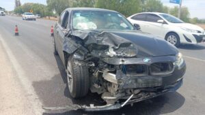 Fue impactado por un coche BMW 330E, modelo 2017, en color gris y con placas de circulación 97E-999 de la Ciudad de México, que era conducido por Sócrates Medina, de 54 años de edad y con domicilio en el vecino Estado de Zacatecas.