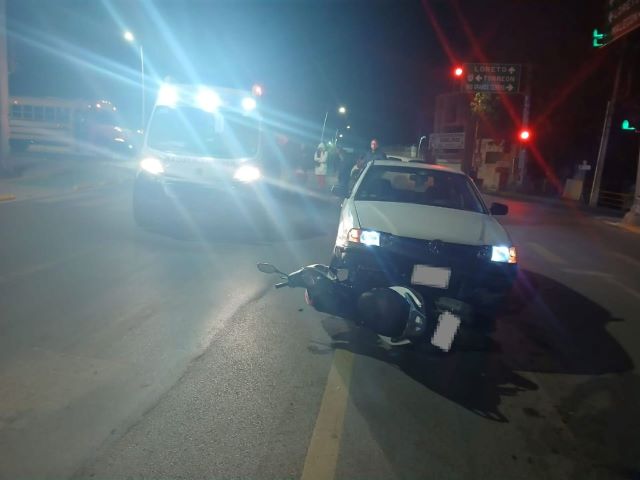 RÍO GRANDE, ZAC.- Un automovilista impactó a un motociclista, que resultó lesionado y fue trasladado a un hospital a recibir atención médica.