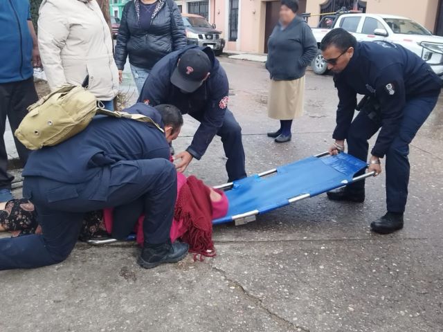 El hecho se registró en las inmediaciones de la colonia La Candelaria, donde la persona, de 76 años de edad, resbaló al transitar por la banqueta debido a que el piso se encontraba mojado.