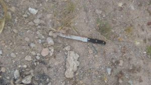 Los uniformados rastrearon el lugar en su búsqueda pero solamente encontraron tirado en un lote baldío el cuchillo con el que mató a su ex mujer y el cual presentaba manchas de sangre.