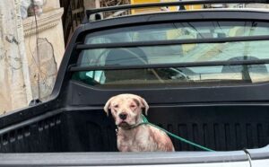 El otro can fue amarrado de un poste casi frente a la casa donde ocurrieron los hechos.