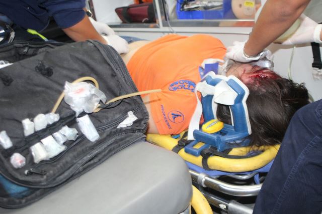 Al lugar del accidente llegaron paramédicos municipales en la ambulancia UE-52, que brindaron los primeros auxilios a la peatón y la trasladaron de urgencia al Hospital 2 del Seguro Social para su pronta atención ya que su vida corría peligro.