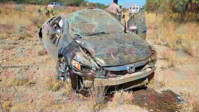 OJUELOS, JAL.- Una mujer se salvó de morir tras la espectacular volcadura del automóvil que conducía.