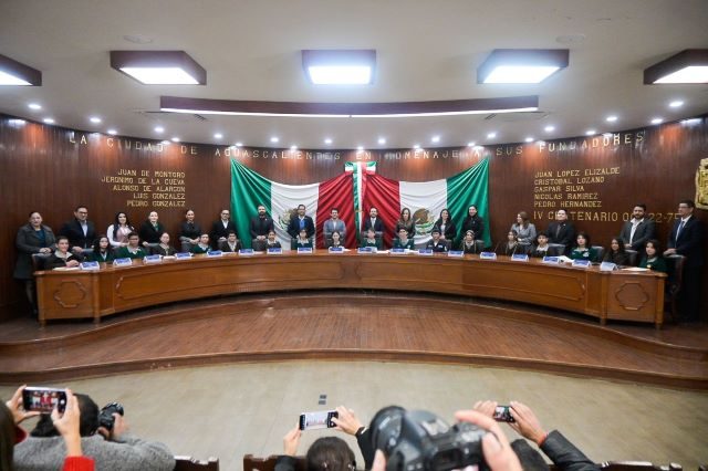Al terminar la sesión, 43 niñas, niños y adolescentes de diversas instituciones educativas participaron por un día como presidente municipal, síndicos, regidores y secretarios, y conocieron a detalle el trabajo que el Ayuntamiento de Aguascalientes realiza a través de las diferentes dependencias para ofrecer a la ciudadanía atención y servicios de calidad.