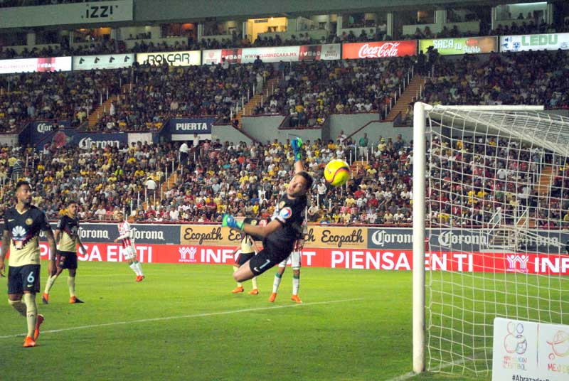 AGUASCALIENTES, AGS.- Los Rayos del Necaxa dividieron puntos con las Águilas del América esta noche en Aguascalientes. El marcador terminó empatado a un gol por bando. Cecilio Domínguez y Brayan Beckeles se hicieron presentes en el marcador.