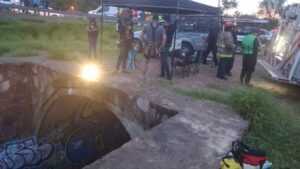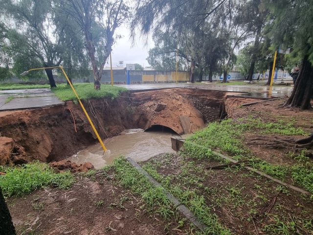 Lamentablemente, tres elementos cayeron a dicho socavón, que dejó al descubierto un colector pluvial-corredor que va desde El Cedazo, atraviesa la antigua zona de tolerancia, Ayuntamiento, y desemboca en el boulevard San Marcos, en el Río San Pedro.