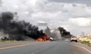 La movilización de las fuerzas de seguridad provocó la reacción de una célula delincuencial, la cual trató de bloquear las acciones operativas incendiando dos vehículos que fueron colocados sobre la carretera federal 49, en el municipio de Villanueva.