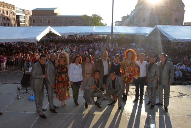 AGUASCALIENTES, AGS.- Como reconocimiento a los años de esfuerzo de los adultos mayores quienes forjaron el presente de Aguascalientes, el alcalde de la capital, Juan Antonio Martín del Campo y la Primer Voluntaria del DIF Municipal, María Elena Muñoz de Martín del Campo, ofrecieron una “Noche Mexicana” en la exedra de la Plaza de la Patria donde se contó con la presentación del grupo musical “La Sonora Dinamita”.
