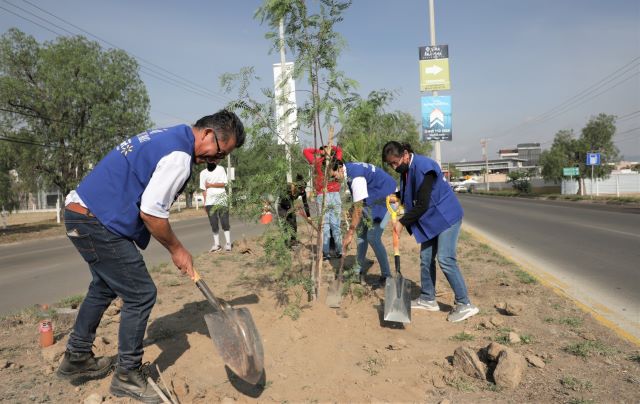 JESÚS MARÍA, AGS.- Este sábado, la Secretaría de Medio Ambiente y Sustentabilidad del Municipio de Jesús María, a cargo de Martina Garza Martínez, inició una jornada de reforestación en la que se plantarán 300 árboles entre pirules y especies arbustivas a lo largo de la semana, sobre la avenida Siglo XXI, en el tramo de Viña Antigua a avenida Independencia.