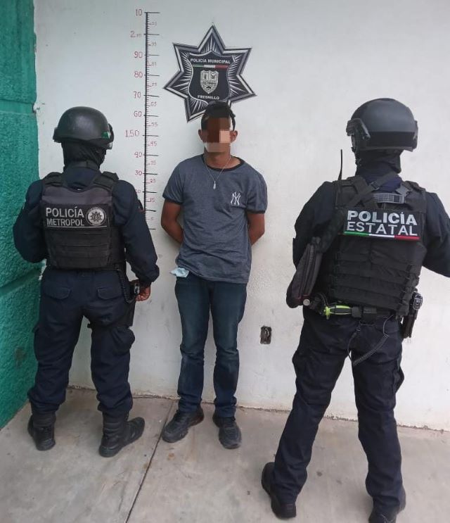 FRESNILLO, ZAC.- En una acción coordinada entre efectivos de las Policías Estatal Preventiva (PEP) y Metropolitana (METROPOL), se logró la detención de un hombre que portaba un arma de fuego corta.