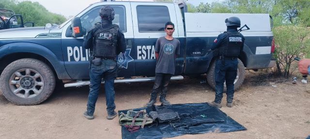 PÁNFILO NATERA, ZAC.- Las corporaciones policiales, en el Municipio de Pánfilo Natera, detuvieron a un hombre que se encontraba en posesión de un arma de fuego, equipo táctico y probable droga.