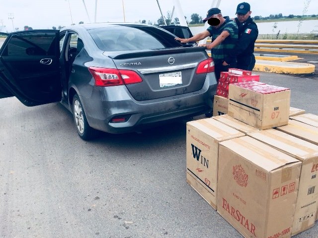El conductor obedeció la instrucción y al acercarse para solicitarle sus documentos, se percataron de que en el automóvil transportaba varias cajas de cartón, por ello cuestionaron al conductor sobre el contenido de las mismas.