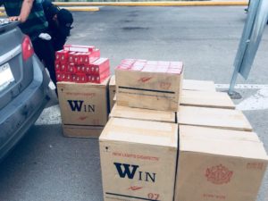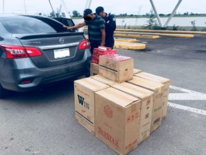AGUASCALIENTES, AGS.- Elementos de la Secretaría de Seguridad Pública del Estado asignados a la Puerta de Acceso Oriente ubicada en la carretera federal 70, llevaron a cabo la detención de un individuo que pretendía ingresar al estado con más de 10 mil cigarros, de los cuales no portaba su documentación necesaria para su legal comercialización en el país, por lo que ya se encuentra a disposición del Agente del Ministerio Público del fuero federal.