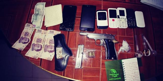 Derivado de lo anterior, los policías estatales detuvieron a la persona, quien junto con el arma, la droga y demás objetos, fue puesto a disposición del Agente del Ministerio Público.
