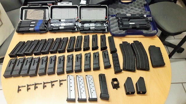 En total, le aseguraron 26 cargadores para conversión a calibre .22 milímetros; 3 cargadores para conversión a calibre .22 TCM; 1 cargador para calibre .40; 3 cargadores para rifle calibre .22 milímetros; 13 carros corredera calibre .22 milímetros; 6 seguros para conversión, y 3 Speed Loader, que es un accesorio que permite recargar la munición de forma rápida.
