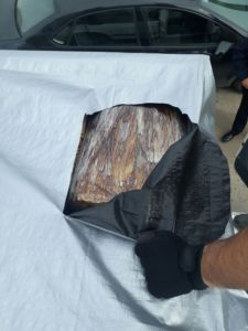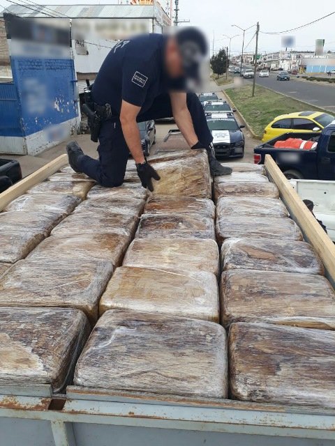 Tras informarle de su falta al Reglamento de Tránsito de Carreteras y Puentes de Jurisdicción Federal, los policías federales efectuaron una revisión al área de carga y se percataron que en la parte superior de las redilas había adaptado un compartimento que venía cubierto con una lona, la cual fue retirada dejando al descubierto 32 paquetes confeccionados en cinta adhesiva, que contenían hierba verde con características similares a la marihuana.