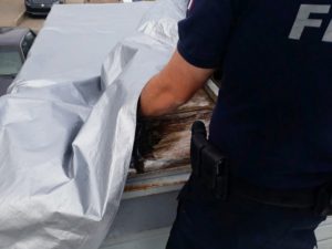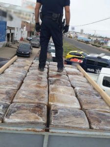 ZACATECAS, ZAC.- La Policía Federal, a través de la División de Seguridad Regional, al realizar recorridos de patrullaje en el camino nacional Zacatecas-Saltillo, municipio de Villa de Cos, estado de Zacatecas, interceptó a una persona que transportaba alrededor de 330 kilos de aparente marihuana en un doble fondo adaptado en el área de carga de un camión de redilas.
