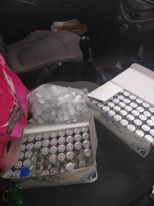 Una vez detenidos quienes dijeron llamarse Édgar Iván “N”, de 37 años, y Eduardo Alejandro “N”, de 30 años de edad, los oficiales detectaron que entre los pies del conductor había una bolsa de plástico que contenía en su interior medicamento controlado, siendo 145 ampolletas con la leyenda HEPTEC 10,000 UI RP, HEPARINA DE SODIO, unidades divididas en 2 cajas, motivo por el que le solicitaron la documentación que ampara la posesión de dicho medicamento.