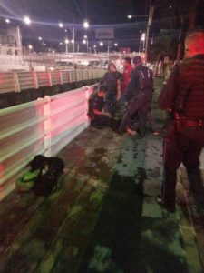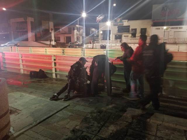 Los hechos se registraron cerca de las 11:30 de la noche del día de ayer, cuando el elemento abordo de la unidad 0143B1 de destacamento Zona Centro, Fernando Gloria Luévano, en su recorrido de vigilancia sobre la avenida Adolfo López Mateos al llegar al cruce con el paso superior F. Elizondo detectó a un sujeto que intentaba arrojarse de lo alto del puente, por lo que de inmediato detuvo la marcha de la unidad y fue hacia el sitio donde se encontraba la persona.