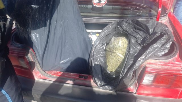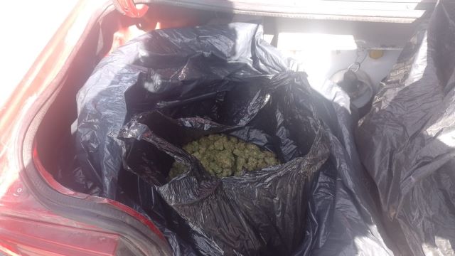 Una vez detenido, al aproximarse los policías hacia el vehículo de alquiler se percataron que este desprendió un fuerte olor a marihuana, motivo por el que le indicaron al conductor que descendiera de la unidad de servicio público para proceder a realizarle una inspección tanto en su persona como a la unidad, localizando en la cajuela del vehículo varias bolsas de plástico en color negro que en su interior contenían hierba verde con las características propias de la marihuana, que dieron un peso aproximado de 11 kilogramos.