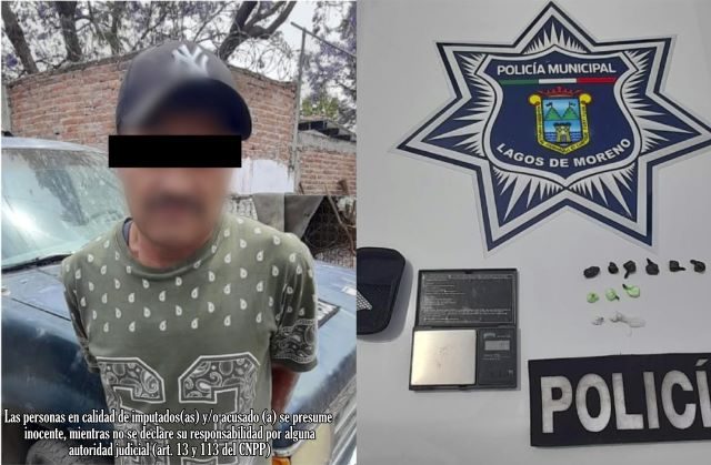 LAGOS DE MORENO, JAL.- Elementos de la Policía Municipal de Lagos de Moreno detuvieron a un sujeto en posesión de presunta droga.