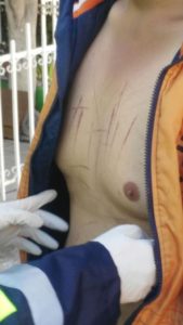 Los oficiales comprobaron que el joven ya se había provocado algunas heridas en el pecho con un cúter, por lo que comenzaron a dialogar con él y se fueron acercando.