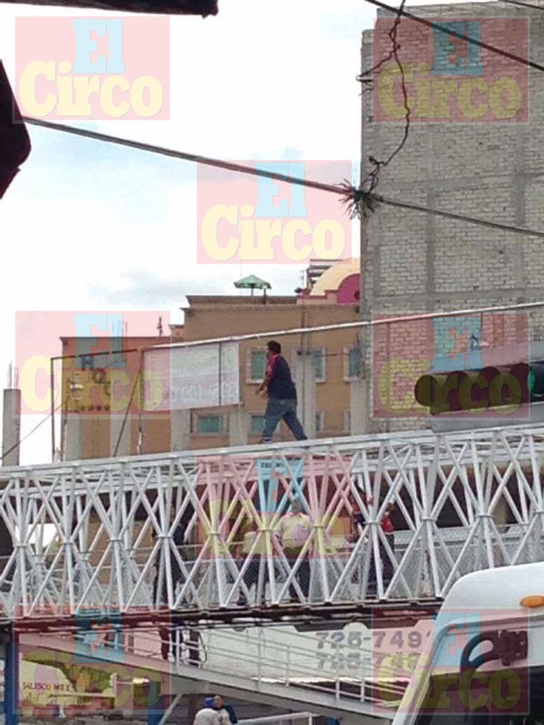 Este hombre, en el transcurso de la tarde, llegó al puente peatonal ubicado sobre la carretera que conduce de San Juan de los Lagos a Jalostotitlán y subió a la estructura, gritando que se iba a suicidar.