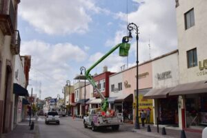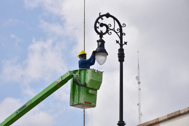 Miriam Rodríguez Tiscareño, secretaria de Servicios Públicos, informó que dos cuadrillas de trabajadores de la Dirección de Alumbrado Público estarán trabajando en las calles Galeana, Francisco I. Madero, Morelos y Nieto, implementando tareas de limpieza en las micas o esferas de los 315 faroles, así como en la sustitución de focos que hayan concluido su vida útil y el mantenimiento correctivo en el cableado.