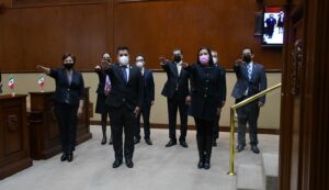 Acto seguido, la diputación permanente, que preside el legislador José Manuel Velasco Serna, en su calidad de presidente, e integran las y los legisladores Irma Guillén Bermúdez (vicepresidenta), Alejandro González Dávila (primer secretario), Elsa Lucía Armendáriz Silva (segunda secretaria) y Guadalupe de Lira Beltrán (prosecretaria), rindieron la protesta de ley correspondiente para encabezar el último periodo de receso.