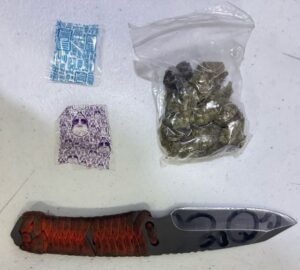 Al realizar patrullajes de búsqueda, lograron ubicarlo y tras una inspección física se le encontró en posesión de una bolsa que contenía hierba con características de la marihuana, dos bolsitas que en su interior contenían una sustancia blanca y granulada con características del crystal, así como un arma blanca.