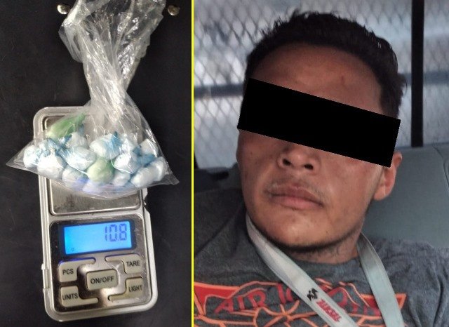 AGUASCALIENTES, AGS.- Un individuo que presuntamente se dedica a la venta y distribución de narcóticos fue detenido en calles de la colonia Ojo de Agua por elementos de la Secretaría de Seguridad Pública del Estado, luego de que fuera detectado a bordo de un vehículo de alquiler, en cuyo interior se localizaron 20 envoltorios que contenían droga “crystal”, los cuales dieron un peso de 10.8 gramos aproximadamente.
