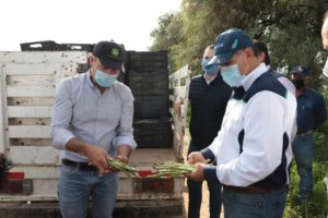 AGUASCALIENTES, AGS.- Inició la cosecha de espárrago en el Estado de Aguascalientes y el gobernador Martín Orozco Sandoval acudió a Rincón de Romos para conocer más de esta actividad que realizan los productores locales como una de las nuevas alternativas productivas para elevar sus ingresos como parte del Programa de Reconversión Productiva la Secretaría de Desarrollo Rural y Agroempresarial del Estado (SEDRAE).