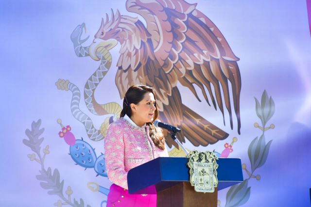 AGUASCALIENTES, AGS.- La gobernadora de Aguascalientes, Tere Jiménez, encabezó la conmemoración del Día de la Bandera, donde llamó a todas y todos a trabajar en unidad y con fuerza por el Gigante de México.