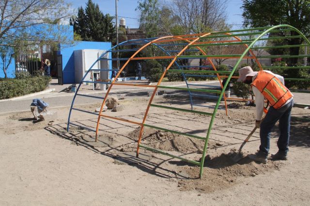 El titular de la Secretaría de Servicios Públicos (SSP), Carlos España Martínez, mencionó que se llevaron a cabo tareas de rehabilitación en los parques de fraccionamientos como Versalles II, Moderno, Modelo, La Salud, El Dorado, La Soledad y Ojocaliente.