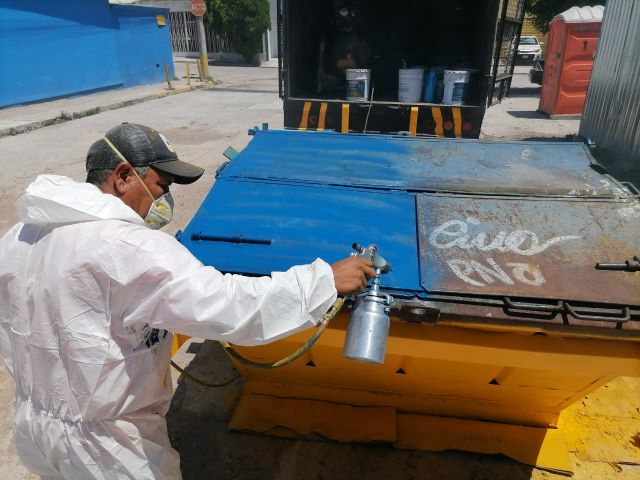 AGUASCALIENTES, AGS.- El Municipio de Aguascalientes redobla esfuerzos para facilitar a la ciudadanía la correcta disposición de residuos sólidos urbanos, a través de trabajos de rehabilitación y mantenimiento en los más de 4 mil 200 contenedores distribuidos en las colonias, fraccionamientos y comunidades de la ciudad capital.