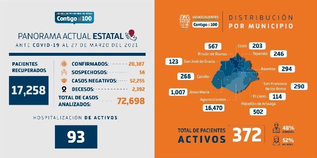 AGUASCALIENTES, AGS.- En las últimas 24 horas, la Secretaría de Salud del Estado reportó que se registraron en Aguascalientes un total 30 nuevos contagios por COVID-19 y desafortunadamente cinco defunciones; en la entidad, el total de casos positivos durante toda la pandemia es de 20 mil 387.