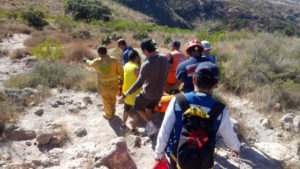 A las 15:17 horas iniciaron el descenso tras colocar al joven en una camilla rígida, por lo que al cabo de varios minutos llegaron al pie del cerro, donde lo subieron a la ambulancia AGS-028 y finalmente lo trasladaron a recibir atención al hospital privado, donde quedó encamado.