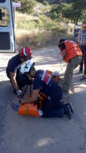 AGUASCALIENTES, AGS.- Elementos de la Coordinación Municipal de Protección Civil y paramédicos de la Cruz Roja auxiliaron y rescataron a un joven que resultó lastimado mientras se ejercitaba en el Cerro del Picacho.