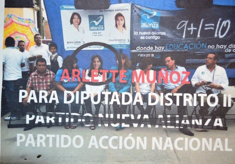 Una prueba más que reafirma su militancia y activismo en el llamado partido de los maestros, es una fotografía en donde acompaña a la entonces candidata a senadora por Nueva Alianza, Silvia Luna en el 2012, brazo derecho de Elba Esther Gordillo, actualmente encarcelada