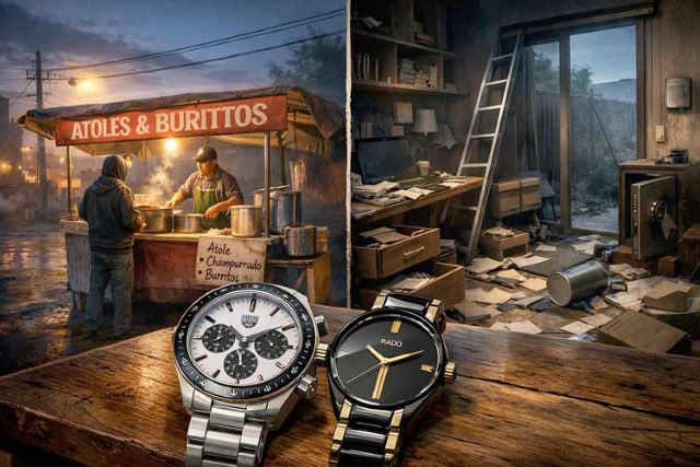 RINCÓN DE ROMOS, AGS.- La madrugada del miércoles 22 de abril se registró un robo a casa habitación que dejó a un comerciante de atoles y burritos, José Ramón “N”, con una pérdida devastadora de 800 mil pesos en efectivo, además de valiosos relojes de lujo.