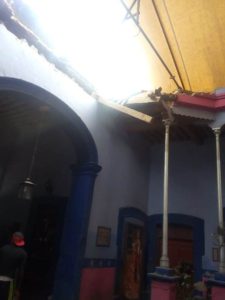 Al lugar se trasladó también personal de la Coordinación Municipal de Protección Civil, que hizo una revisión del lugar y confirmó el colapso de una parte de la techumbre de 2×2 metros y cuyos escombros cayeron sobre las mesas.