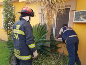 El servicio de emergencias 911 recibió el reporte del siniestro, por lo que al lugar acudieron policías preventivos en la patrulla 0081 del Destacamento Terán Sur así como elementos del cuerpo de Bomberos Municipales en las unidades UE-16, UE-24 y UE-26, al mando del comandante Carlos Aguilar Utrilla.