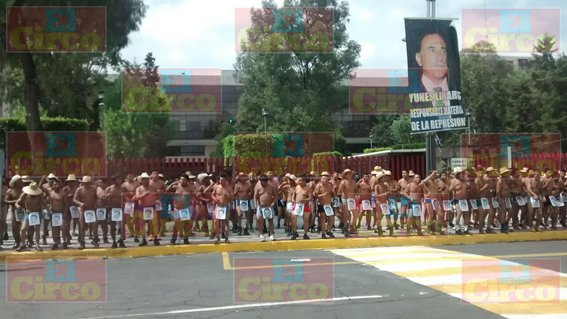 MÉXICO, D.F.- Con mantas y pancartas integrantes del Movimiento de los 400 Pueblos se manifiestan semidesnudos afuera de H. Congreso de la Unión, demandando se investigue al Diputado Federal panista Miguel Ángel Yunes Linares.