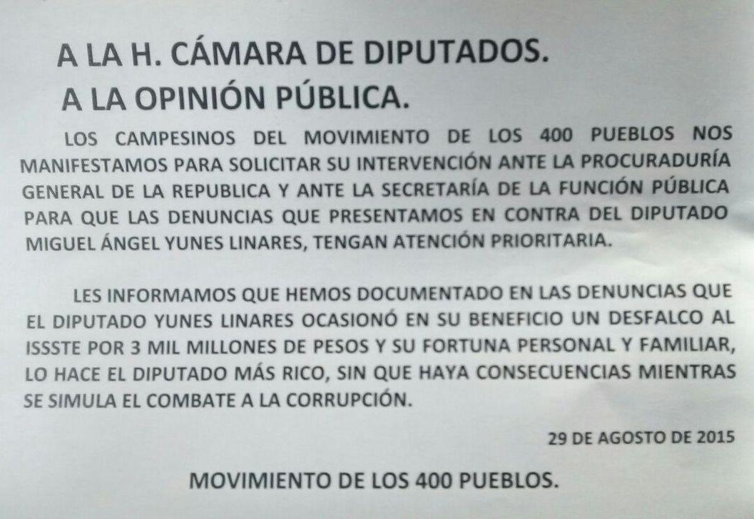 Los integrantes reparten un volante donde solicitan la intervención de la Procuraduría General de la Republica y de la secretaria de la función pública para que las denuncias presentadas contra el Diputado panista tengan atención prioritaria.