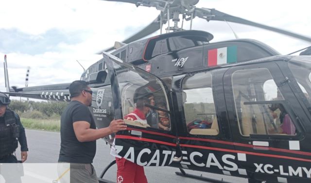 El personal de la Unidad Aérea, con apoyo de “Cuervo”, el helicóptero de la SSP, trasladó a los lesionados al Hospital General en Zacatecas.