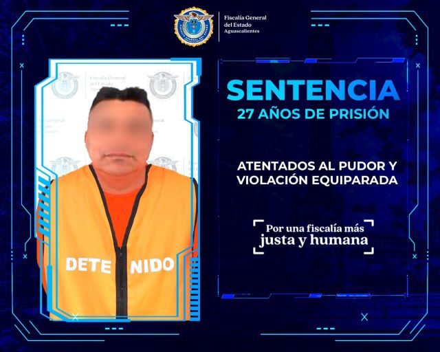 AGUASCALIENTES, AGS.- La Fiscalía General del Estado de Aguascalientes obtuvo una sentencia condenatoria en contra de Alejandro “N” de 27 años de prisión por su responsabilidad en los delitos de atentados al pudor y violación equiparada en agravio de una menor de edad.