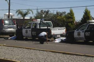 Los uniformados detuvieron a varios sujetos sospechosos, pero instantes después arribaron varios sicarios para rescatarlos a bordo de una camioneta Suburban, en color blanco, y un automóvil Nissan Tsuru, por lo que éstos acribillaron a los policías municipales, que cayeron abatidos a balazos.