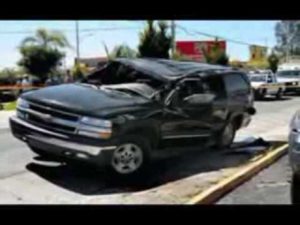 Alrededor de las once de la mañana, en el boulevard Juan Pablo II, se volcó una camioneta blindada Chevrolet Suburban, en color negro y con placas de circulación HZG-55-00 de Jalisco, que resultaron ser sobrepuestas ya que correspondían a un auto Nissan.