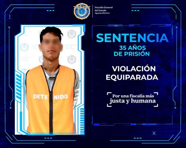 AGUASCALIENTES, AGS.- Tras ser declarado culpable por el delito de violación equiparada en agravio de una menor de edad, a la que atacó durante dos meses en el 2023, un sujeto fue sentenciado a 35 años de prisión.