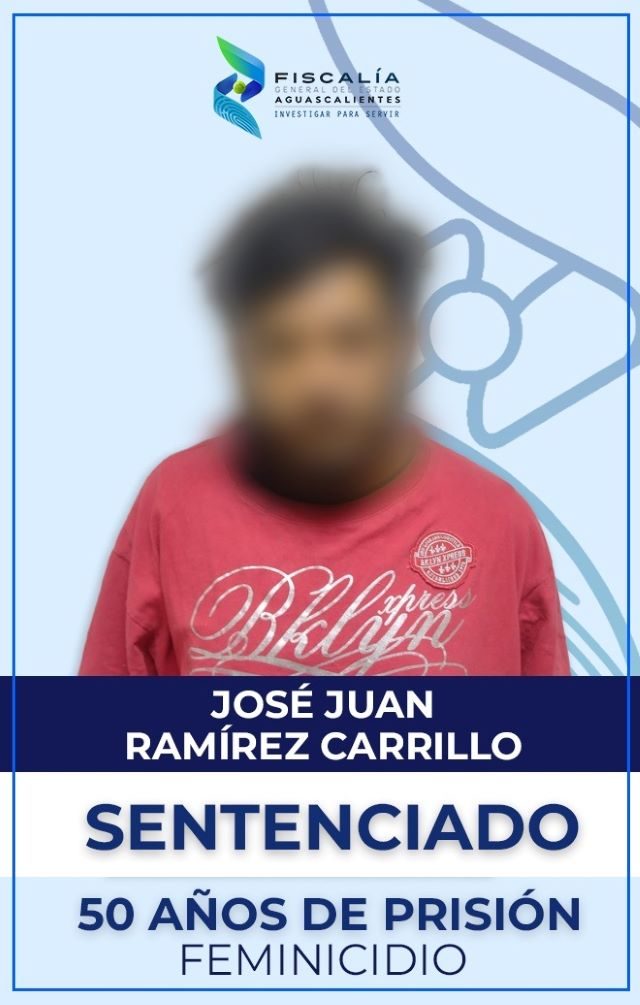 AGUASCALIENTES, AGS.- La Vicefiscalía Jurídica y de Litigación Penal obtuvo una condena en contra de José Juan Ramírez Carrillo por ser el autor del feminicidio de Teresa de Jesús, su pareja sentimental.